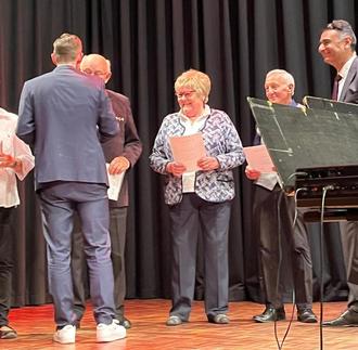 Hannelore Scherf trat vor 40 Jahren kurz nach der Gründung des Frauenchores zum MGV Mozart. Bereits zwei Jahre später wurde sie als Besitzerin in den Vorstand gewählt. Sie fungierte als Schriftführerin, Geschäftsführerin und von 1995 bis 1998 als 1. Vorsitzende. Hannelore kümmert sich seit vielen Jahren im Vergnügungsausschuss um die Vereinsveranstaltungen und ist aktuelle Sprecherin des Frauenchores. Ebenfalls seit 40 Jahren singt Otto Diehl aktiv im Männerchor. Seit 1984, dem Jahr der Sängerheimerbauung ist er für die Elektrik und die Heizung verantwortlich. Darüber ist er bei Reparaturen und Renovierungen immer wieder bereit dem Verein zu helfen. Auf stolze 60 Jahre Sangestätigkeit kann Werner Traiser zurückblicken. Von 1967 bis 1987 war er Schriftführer, von 1987 bis 1990 2. Vorsitzender und von 1990 bis 1994 versah er das Amt des 1. Vorsitzenden. Seit vier Jahren fungiert er als Sprecher im Männerchor.