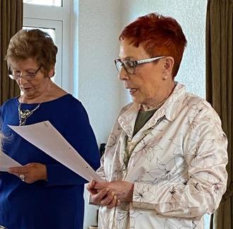 Der etwas satirische Mundart-Vortrag „De dode Has“, präsentiert von Astrid Fischer und Lieselotte Dörr, in dem der „Rammler mit em gääle Stummelsschwänzje“ eine seltsame Wiederauferstehung erlebte, fand großen Beifall und erzielte viele Lacher.