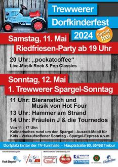 Ein Highlight der Spargeltage 2024 ist der 1. Trewwerer Spargelsonntag am 12. Mai (Muttertag). Ab 11 Uhr gibt es auf dem Freigelände hinter der TV-Turnhalle Trebur (Hauptstraße 60) ein kunterbuntes Familienfest mit verschiedensten Spargelspezialitäten und leckeren Getränken.