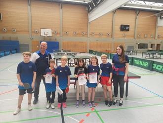 Für den Bezirksentscheid der diesjährigen mini-Meisterschaften war eine ganze Gruppe von Spielern vom TSV 05 Trebur qualifiziert: Mit Amelie Mayer, Clara Sol del Campo, Luna del Campo, Theo Bunk, Erwin Bunk, Noah Trietsch, Marlon Malcherek und Ben Schäfer waren so viele wie nie zuvor spielberechtigt. Zwar mussten Noah und Luna terminlich bzw. krankheitsbedingt leider passen, doch vertraten die anderen bei ihrem ersten Turnier dieser Größenordnung den gesamten Tischtennis-Kreis Groß-Gerau. Kein anderer TT-Verein aus der Region war in Frankfurt am Start. Zunächst traten dabei am Samstagmorgen um 10:00 Uhr Amelie, Clara Sol, Marlon und Theo in der Altersklasse III bis 8 Jahre an die Tische. In 4er und 5er Gruppen ging es für die vier TSV-Akteure an 12 Tischen im Modus jeder-gegen-jeden los. So konnte jeder viele Einzel spielen. Um den Turnierablauf bei knapp 100 Spielerinnen und Spielern nicht allzu lang zu ziehen, wurde nur auf zwei Gewinnsätze gespielt. Trotz guter Leistungen reichte es für die vier leider nicht, sich in den stark besetzten Gruppen für die anschließende Ko-Runde zu qualifizieren. Trotzdem bekamen sie von den anwesenden Trainern Jessica Weigel, André Bätjer und Dirk Wehner positives Feedback. Amelie gelang es sogar ein Spiel und weitere Sätze zu gewinnen, die anderen kamen ebenfalls zu ausgeglichenen Sätzen, bei denen aber der Fokus noch auf der Aneignung von Wettkampfpraxis lag.