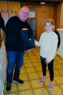 Unsere Glockenspielerin Maja ist 10 Jahre alt und bekommt ihr Geschenk zu 10 Jahren Mitgliedschaft bei den Drummler überreicht