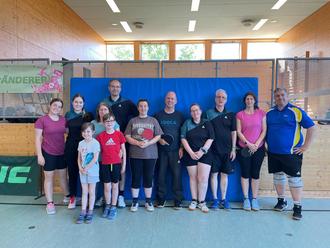 Als einer von über 50 Vereinen in Hessen beteiligte sich der TSV 05 Trebur am vergangenen Samstag an der Aktionswoche „Hessen spielt Tischtennis“. Beim siebten Treburer Schleifchenturnier wurden die Hallentüren für alle Interessierten geöffnet. Von 15 bis 17:30 Uhr wurden für die Hobby- und Aktiven-Spieler in der kleinen Turnhalle der MPS-Trebur vier offizielle Runden ausgelost, in denen es im Doppel um die begehrten Schleifchen ging. Dabei stand der Spaß am Spiel im Mittelpunkt, und alle hatten viel Freude an interessanten Paarungen, egal ob klein oder groß beziehungsweise mit mehr oder weniger Tischtennis-Erfahrung. Zwischendurch lockte der verführerische Geruch frischer Waffeln oder leckerer Kuchen, um sich in den Pausen zu stärken. Zum Schluss hatte jeder mindestens ein Schleifchen ergattert, und mit der maximalen Ausbeute von vier Schleifchen gewannen Jessica Weigel und Michael Luley das Schleifchenturnier. Auch nach dem Ende des Turniers wurde noch eifrig die Gelegenheit genutzt, den ein oder anderen Ball zu spielen. So klang ein schönes Event harmonisch aus.