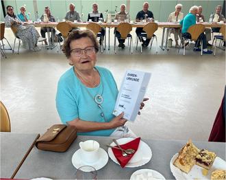 Bei der Versammlung wurde Hildegard Machate als einzige Anwesende der sechs Geehrten für 25 Jahre Mitgliedschaft ausgezeichnet. Karl Rein wurde gar für 50 Jahre Mitgliedschaft im VdK gedankt.