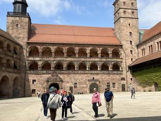 Die Markgrafenstadt Kulmbach am Zusammenfluss des Roten und weißen Mains gelegen, war Ziel des nächsten Frankentages. Die Stadt ist bekannt für Biere von Weltruf, einer der imposantesten Burganlagen Deutschlands und nicht zuletzt die Stadt, in der Entertainer Thomas Gottschalk aufgewachsen ist. Nach Ankunft in Kulmbach hieß es als erstes, hinauf zur „Plassenburg“! Da der Fußweg sich als sehr herausfordernd zeigte, wurde dann doch lieber der Shuttle-Bus benutzt. Die Burg ist das Wahrzeichen der Stadt und zählt zu den bedeutendsten Baudenkmälern Oberfrankens.