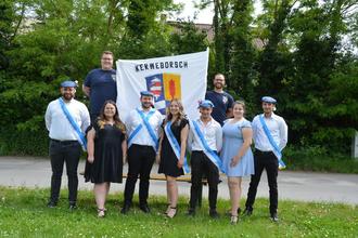V.l.n.r vorne Tim Gardner, Lulu Böhm, Robin Hofmann (Kerwevadder), Doreen Brabänder (Kerwemudder), Leon Austen, Lena Lukas, Thies Lukas