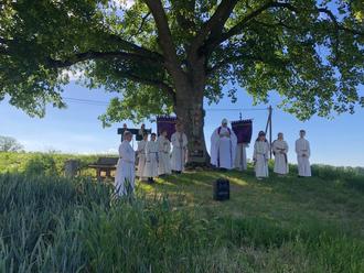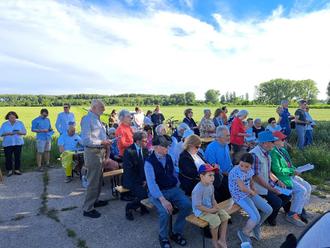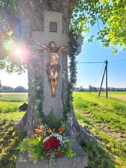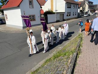 Am Sonntagabend des 9. Juni 2024 wurden das neue Christus-Corpus und die neu angebrachte Spruch-Tafel am Kreuzdamm in Astheim feierlich durch Pfarrer Loch eingeweiht. Unter Begleitung zahlreicher Messdiener setzte sich - einer ganz alten Tradition folgend - eine Bittprozession von der Kirche in Richtung Kreuzdamm in Bewegung. Unterwegs wurde für die Fluren und Felder, die Natur und Tiere gebetet. Am Kreuzdamm erwarteten weit über 50 Gläubige die Prozession. In einer kleinen Andacht wurde das Kreuz gesegnet. Michael Bauer und Karl-Heinz Alig umrahmten die Feier musikalisch. Frau Tamara Mussel-Twisselmann hatte das Kreuz festlich mit Blumen und einem Kranz geschmückt. Im Anschluss gab es vom Förderverein St. Petrus in Ketten Sekt, Wein und Brezeln unter den schattenspendenden Blättern des alten Bergahorns, organisiert durch Charlotte Arnold, Katharina Mussel und Georg Bender. Die Vereinsvorsitzende Jutta Alig sprach Grußworte und Constantin Mussel berichtete aus der Historie des Kreuzes. Die Anschaffung des Corpus war nur möglich, weil es zahlreiche Spender gab. Unser herzlicher Dank gilt daher all jenen, die etwas zur Neugestaltung beigetragen haben. Nur durch die gemeinsame Hilfe konnte in Astheim ein altes Kulturdenkmal erhalten und auch fortan für Vorbeikommende sowie Suchende zu einem „Kraftort“ werden, wie schon zuvor in seiner jahrhundertealten Geschichte. Möge der Segen des am Kreuz hängenden Heilands unseren Ort und seine Bewohner weiterhin vor Katastrophen und Hochwasser schützen!