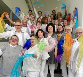 In den vergangenen 25 Jahren hat der Chor 231 verschiedene Lieder gesungen und dabei ein breit gefächertes Repertoire aufgebaut, das von Pop- und Jazzsongs über Schlager bis hin zu Gospel reicht. Für die Sängerinnen und Sänger von „disharmonix” bedeutet dies jedoch nicht nur, dass sie die Töne treffen müssen. Da der Chor seine Auftritte ohne Noten performt und die Songs mit einer entsprechenden Choreografie unterstreicht, müssen zusätzlich alle Texte auswendig gelernt und die Choreografien einstudiert werden.