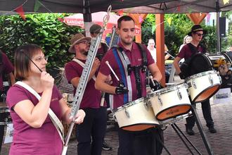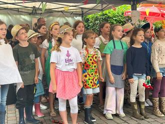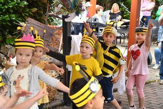 Wirbelnd und lautstark zogen die Schwarzbachtrommler unter Leitung von Tobias von der Au ein. Kinder aus der Kita Tannenweg, die einmal pro Woche mit rüstigen Frauen und Männern aus dem Alten- und Pflegeheim singen und Gymnastik machen, führten einen putzigen Biene-Maja-Tanz auf.