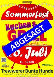 Aufgrund einer akuten Störung in der Abwasserversorgung am Vereinsgelände der Trewwerer Bunten Hunde muss der Verein das am 6. Juli stattfindende Sommerfest leider absagen.