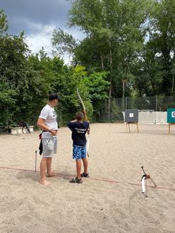 Auf dem Beachvolleyball-Feld haben viele kleine und große Gäste das Bogenschießen ausprobiert, auch dies war eine Aktion der Schwimmbadfreunde, um verborgene Leidenschaften zu entfachen. Wir hatten Riesenspaß!
