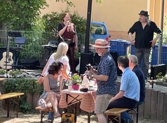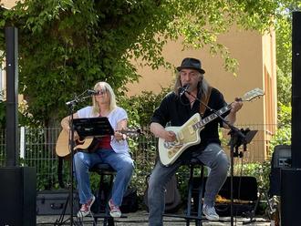 Mit toller Musik vom Duo ‘Love on the Rocks“ bewegte selbst bei schweißtreibenden Temperaturen zum Tanzen und Mitswingen unter schatten-spendenden Bäumen. Barbara Wiebe-Köhler und Gerhard Wiebe haben gezeigt, wie gut sie sich auf ihr Publikum einstellen können und die passende Musik für einen heißen Sommernachmittag bieten.