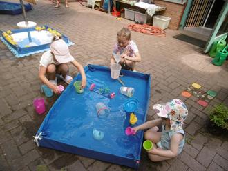 Im Anschluss gab es verschiedene Spielstationen wie Dosenwerfen, Glitzer-Tattoos, Edelsteine Sandsieben, eine Schubkarren-Rennstrecke. Und da die Sonne an diesem Tag schon ihr Bestes gab, konnten sich die Kinder bei Wasserspielen vergnügen und etwas erfrischen.