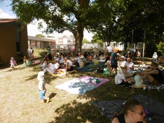 Die Kinder und das Kollegium sind auf ein eigens zum Jubiläum gedichtetes Lied (ein Geschenk vom Kinderhaus Phantásien) eingelaufen. Es wurde gemeinsam ein Lied gesungen und anschließend haben Jochen Engel und Astrid Plahuta noch ein paar Geburtstagsgrüße übermittelt.