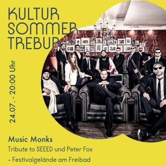Die Bässe drücken dich an die Wand, der Groove pulsiert durch jede Faser, Handtücher und Klamotten propellern wild über den Köpfen und der Schweiß tropft von der Decke - die Music Monks sind in Trebur! Deutschlands erste und einzige SEEED & Peter Fox Tribute-Band erobert seit über acht Jahren die Tanzsäle, Konzerthallen, Festivals und Open-Airs quer durch den deutschsprachigen Raum im Sturm und hinterlässt die Crowd garantiert überglücklich!