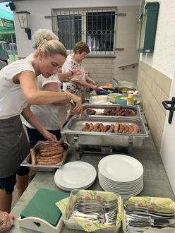Marian hat uns mit Bratwürsten und Steaks versorgt, die Salate haben die Seniorinnen, wie immer, selbst beigesteuert.