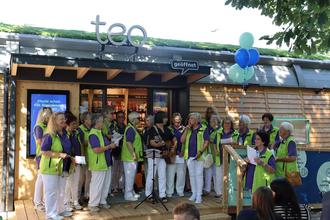 Bürgermeister Jochen Engel und Philipp Weidmann vom Team Teo haben am 10. Juli um 10 Uhr den teo-Markt eröffnet. Viele kleine und große Gäste sind gekommen, um diesem großen Ereignis beizuwohnen.