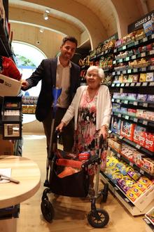Den ersten Einkauf machte Anna Dickhaut in Begleitung mit Bürgermeister Jochen Engel.