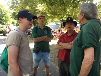 heute gehen wir den 3. Tag an. Heute wollen wir zu dem Schleppertreffen nach Briedern an der Mosel fahren. Dort warten die Rasenden Riffelbleche auf unser Erscheinen. Briedern liegt einen Ort weiter Mosel aufwärts als Beilstein. Die Fahrt nach Briedern führte uns anfangs wieder über die Hunsrückhöhen und zum Schluss hinab an die Mosel. Dort mussten wir noch ein paar Kilometer die Mosel entlang tuckern, um dann in Briedern anzukommen. Das Ausstellungsgelände zog sich die Mosel entlang und war ab und zu mit Campern durchsetzt. So gegen 11:00 Uhr am Morgen wurde eine Rundfahrt gestartet. Diese führte durch die Weinberge von Briedern, oberhalb der Mosel, an der sich etwa 60 Traktoren beteiligten. Auf halber Strecke wurde ein Zwischenstopp eingelegt, um ein paar nette Worte mit den anderen Teilnehmern wechseln zu können und um Getränke aufzunehmen. Von Beidem haben wir Gebrauch gemacht. Die Rückfahrt ging dann fast ausschließlich durch den Wald, hinter dem Bergrücken. Als wir auf der Vorderseite wieder angelangt waren, fanden wir uns bei den Hallen von ‚Mosel Kellergeister‘ wieder. Ein dort stationiertes Empfangskomitee hatte etliche Becher Wein, Wasser und auch Fleischwurstschnippel vorbereitet. Es war genügend vorhanden, sodass nach unserer Abfahrt noch von allem etwas zur Verfügung stand. Auf dem Ausstellungsgelände haben wir uns dann mit der nötigen Verpflegung eingedeckt. Große Freude kam auf, als unser Clubmitglied Robert auf dem Gelände eintraf. Unter einem Sonnenschutz und entsprechenden Getränken haben wir dann dem Nachmittag entgegen gesehen. Wir hatten noch einen Ritt von gut drei Stunden vor uns und diesen nahmen wir dann unter die Räder. Auch dieser Tag verlief wieder ohne spektakuläre Ereignisse, alle Traktoren blieben fit und so liefen wir gegen Abend wieder in Kastelaun und unserer Pizzeria ein. Ein schöner sonniger Tag hat sich dem Abend zugeneigt und alle schliefen den Schlaf der Gerechten. Der nächste Tag sollte wieder ein etwas strapaziöser werden, denn wir hatten für die Heimfahrt gut hundert Kilometer abzuspulen. Auf circa der halben Strecke, beim Bauer Schorsch in Bingen, wurde wieder die Mittagspause eingelegt, um dann wieder am Rheindamm entlang nach Mainz zu fahren. Hier waren, wie auf der Hinfahrt, die Radfahrer das größte Problem. Hinter der Kostheimer Mainbrücke haben wir für einen kurzen Stopp angehalten und uns voneinander verabschiedet. Das Fazit war: vier wunderschöne Tage, bei denen auch noch das Wetter mitgespielt hat, und einen großen Dank an Dieter, der diese Fahrt, wie in jedem Jahr, wieder vorbildlich ausgearbeitet hat. Tschüss