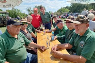 wir waren wieder unterwegs. Diesmal hat es uns wie alljährlich nach Diedenbergen verschlagen. Wir hatten uns für den Samstag entschieden, weil die Wetter-App hier bessere Voraussetzungen prognostiziert hatte. Und wie hatten wir recht. Der Samstag war ein herrlicher Tag mit Sonnenschein und in Diedenbergen hat man uns wohlwollend empfangen. Wir waren wieder gut vertreten. Um 10:00 Uhr sind wir bei Gerhard gestartet. Es war dies ein Güldner, ein John Deere, ein Fahr, ein Eicher und ein Hanomag. Am Schönauer Hof hat sich dann noch ein Fiat dazu gesellt. Auf dem Gelände in Diedenbergen wartete schon ein Porsche, der aus Bischofsheim kam und uns zugerechnet wurde. Ein Oldtimerfreund aus Flörsheim kam allerdings ohne sein Fahrzeug. Wir haben für die Strecke genau 75 Minuten benötigt. Es gab keine Zwischenfälle sowohl bei der An- als auch auf der Abreise. Wir konnten dort wieder viele alte Bekannte treffen und uns nett unterhalten. Diese Oldtimertreffen sind immer eine Möglichkeit mit Gleichgesinnten aus anderen Orten und Regionen einen Plausch zu halten. Bei der Abfahrt gegen 15:30 Uhr hatte sich zwar eine dicke schwarze Wolke gebildet aber sie hat uns verschont und wir sind alle trocken heim gekommen. In Diedenbergen stehen wir immer auf einer festen Wiese, von wo man einen schönen Blick auf Frankfurt hat. Außer dem Oldtimer-Laufsteg (hier werden die Fahrzeuge den Anwesenden vorgestellt Keiner von uns war so eitel und hat davon Gebrauch gemacht) gab es noch eine Dreschvorführung. Der Fokus dieses Treffens liegt in erster Linie auf historischen Landmaschinen und aus diesem Grund sieht man hier auch keine Autos. So eben habe ich gerade festgestellt, dass ich über unsere Ausfahrt zum Forsthaus Kalkofen noch nicht berichtet habe. Das werde ich demnächst nachholen. Heinz