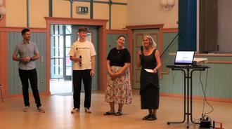 Bürgermeister Jochen Engel, Fynn Ewald, Mona Braunschädel und Astrid Plahuta eröffnen die Veranstaltung