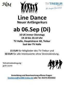 Anmeldung und Beantwortung offener Fragen per Email an linedance@tv1886-trebur.de oder telefonisch unter 01573.9555022