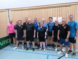 Schon lange war die Idee in den Köpfen gewesen, nun wurde sie endlich auch umgesetzt: Für einen freundschaftlichen Vergleich trafen sich Geinsheimer und Treburer Tischtennisspieler vergangenen Donnerstag in der Geinsheimer Grundschulhalle. Einige Spieler sind in beiden Vereinen aktiv oder waren in der Vergangenheit sogar Mannschaftskollegen. Jeweils sechs Akteure vom SV 07 und vom TSV 05 traten nun im Doppel und Einzel an die Tische und lieferten sich durchweg schöne Spiele. Oftmals entschieden nur wenige Punkte über den Satz- oder Matchgewinn, doch waren die Ergebnisse für alle zweitrangig. Der Fokus lag auf dem Wiedertreffen in der Halle und dem Knüpfen neuer Tischtennis-Bekanntschaften. So machte es auch nichts aus, dass der Termin an einem Hitze-Sommertag mit Temperaturen von 35°C stattfand – jeder hatte ausreichend zu Trinken dabei und das abschließende Kaltgetränk schmeckte dadurch umso besser. Einhellig wurde sich in der Runde für eine Wiederholung bzw. eine Intensivierung des Vereinskontakts ausgesprochen.