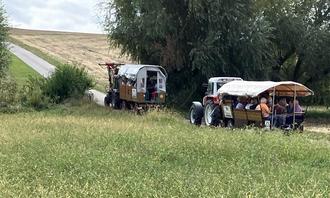 Gestartet wurde im Weingut Ludwig in Nackenheim. Nachdem die 51 LandFrauen und Männer die drei Wingertwagen bestiegen hatten und nach einer kurzen Einführung durch Frau Ludwig, ging die interessante Rundfahrt durch die Rheinterrassen los.