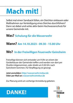 Zur besseren Planung, bitten wir alle Interessierten sich vorab unter http://wasserwehr.trebur.de oder per Mail an wasserwehr@trebur.de anzumelden.