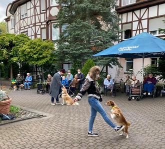 Die beiden Vierbeiner von Jule Heinemann und ihrer Mutter waren im Auftrag des Hundevereins „Trewwerer Bunte Hunde“ am 19. September zu einem kurzweiligen Besuch in den Garten des Seniorenhauses in Nauheim eingeladen worden. Ida und Fey zeigten bereitwilligst ihr Können in Sachen Tricks und Grundgehorsam - natürlich immer mit scharfem Blick auf die Wurst im Futterbeutel. Beim anschließenden Kuscheln mit den Seniorinnen und Senioren hatten die Hündinnen großen Spaß, der sichtlich und spürbar von allen genossen wurde. „Es berührt uns Hundebesitzer sehr, wenn die eigenen Hunde so positiv auf alte Menschen reagieren, so Anja Mütze-Heinemann zu Nina Ochse, deren Einladung die vier gern gefolgt sind und auch sicher nicht das letzte mal die Gastfreundschaft des Seniorenhauses genießen durften. Mit großen Tüten Leckerlis zur Belohnung gingen die beiden Mensch-Hund-Teams seelig wieder nach Hause und freuen sich auf das nächste Mal.
