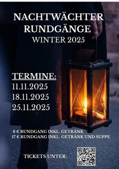 Am 11., 18. und 25. November 2025 haben Interessierte die Gelegenheit, den Treburer Nachtwächter Peter Gabel auf seinem Rundgang durch das abendliche Trebur zu begleiten. Ausgestattet mit Hellebarde, Laterne und Horn erzählt er unterhaltsam von der Arbeit der Nachtwächter, berichtet Wissenswertes über die Treburer Fachwerkhäuser und gibt Einblicke in Brandgefahr und Brandschutz vergangener Zeiten.