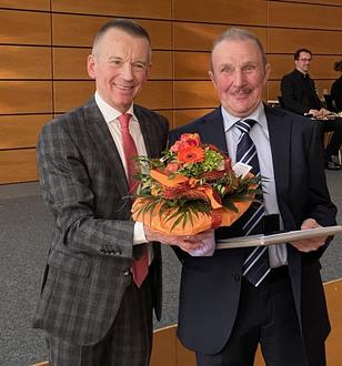 Landrat Thomas Will überreicht Herbert Fückel den Ehrenbrief des Landes Hessen