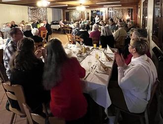 Der Vorstand freute sich, dass in diesem Jahr über 60 Teilnehmer den Neujahrsempfang des Vereins mitfeierten. Als die Gäste am Samstag um 18 Uhr eintrafen, erwartete sie ein in Kerzenlicht getauchtes Sängerheim mit stilvoll gedeckten Tischen. Da man sich wegen der Weihnachtspause einige Wochen nicht gesehen hatte, gab es bei einem Gläschen Sekt viel zu erzählen. Vorstandsmitglied Susanne Schrimpf begrüßte die Gäste in ihrer charmanten Art und stimmte alle auf das neue Jahr ein.