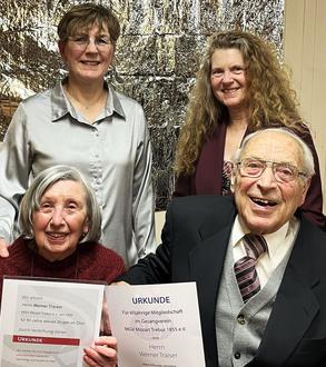 Werner Traiser ist der „Grand Seigneur“ des MGV, keiner singt und unterstützt den Verein so lange wie er. Ob als Schriftführer von 1967 bis 1987, als 2. Vorsitzender von 1987 bis 1990, als 1. Vorsitzender von 1990 bis 1994 oder als Sprecher des Männerchores von 2019 bis März letzten Jahres. Werner Traiser prägt den Verein als Sänger, Vorstandsmitglied und Mensch seit 60 Jahren.