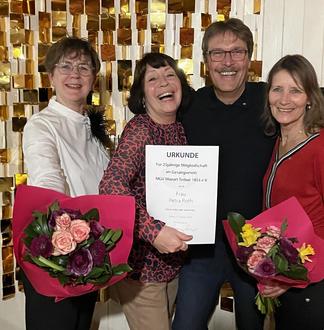 Susanne Schrimpf, Petra Roth, Klaus Roos und Silvia Jourdan- Nickel (von linke nach rechts) wurden für 25 aktives Singen geehrt