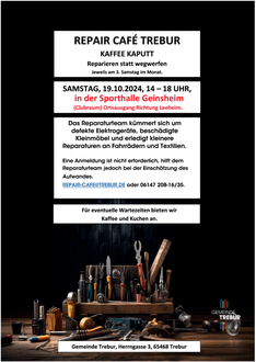 Am 19.10.2024 kommt das Reparaturteam nach Geinsheim!