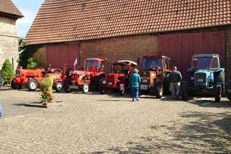 es ist zwar schon etwas her aber ich will euch unsere vorläufig letzte gemeinsame Fahrt in diesem Jahr nicht vorenthalten. Am 15. September haben wir wie fast in jedem Jahr das Oldtimertreffen in Gabsheim mit 7 in Worten sieben Traktoren besucht. Gabsheim verbindet seine Kerb seit genau 10 Jahren jeweils mit einem Oldtimertreffen. Wir, die Astheimer sind seit dem ersten Treffen mit dabei. Das hat natürlich auch den Vorteil, dass wenn wir uns anmelden, und das tun wir immer auch einen Stellplatz reserviert bekommen. In diesem Jahr hatten wir in einem großen Hof gestanden, wo unsere ‚Exponate‘ so richtig zur Geltung kamen. Aber wie war der Weg dorthin? Na wie immer ging es erst zur Fähre am Kornsand und dann weiter über die rheinhessische Höhenstraße Richtung Alzey. Bei Undenheim haben wir uns dann links ausgeklinkt und sind nach Gabsheim getuckert. Da es über Nacht kalt geworden war habe ich die gefütterten Hosen angezogen und als Jacke die Steppjacke gewählt. Ich sah aus wie das ‚Michelin Männchen‘. Auf Handschuhe wollte und konnte ich auch nicht verzichten, denn es ist doch ein weiter Ritt bis ins ‚Rheinhessische‘. Da wir nicht die ersten waren hatte andere schon das Schlepperfrühstück ausgeweidet und ich konnte nur noch einen *Steppel‘ Blutwurst ergattern. Hat aber gut geschmeckt. So dann haben wir uns über den Tag dort so rumgeschlagen. Hie und da wurden schlaue oder auch weniger schlaue Traktor Gespräche geführt und sich so gegen einander ausgetauscht. Dies natürlich nur verbal. Wir haben keinen von uns dort gelassen, sie sind alle wieder zuhause angekommen. Auf unserer Heimfahrt machen wir immer den kleinen Umweg über Dexheim. Wenn wir da von der Höhe herunter kommen haben wir einen herrlichen Blick über das ganze Rhein Main Gebiet. Das Wetter war schön und klar und so wurden wir ordentlich belohnt. Unser bunter Hund Gerhard wurde dort natürlich wieder von jemanden erkannt und so wurden diese Herrschaften auch wieder ‚zugelullt‘. Bitte nehmt meine Ausdrucksweise nicht so ernst aber sonst müsste ich im Stenogrammstil schreiben und da wäre ich mit drei Zeilen fertig. Dann ging es wieder über die Fähre und zum Abschluss noch einmal an den Oberwiesensee. Wegen der Reparatur der Landgrabenbrücke mussten wir den Heimweg dann über Trebur antreten, was auch nicht so schlimm war. Wir kannten ja den Weg. Auf der Fähre am morgen hat doch der Kassierer ‚Mätzchen‘ gemacht. Er wollte von jedem wissen wie schwer, der Traktor wäre. Das hat er aber dann doch aufgegeben, denn das hätte er dann zusammen rechnen müssen. Ob er Bedenken hatte dass die Fähre eventuell kippt. Naja weis der Teufel was er sich gedacht hat. Der am Abend hat den Beleg vom Morgen übernommen. So vorerst steht nichts im Raum, also werde ich mich jetzt für einige Zeit ruhig verhalten, es sei denn wir veranstalten noch eine Weihnachtsfeier. Soweit ist das gar nicht mehr hin. Tschüß.