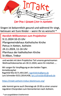 Wir freuen uns auf rege Teilnahme und auf Euer Dabeisein zum Weihnachtskonzert am 30. November 2024.