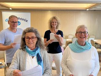 Es gibt kein Vorsingen, denn der erfahrene Chorleiter hört, in welcher „Stimmlage“ die neue Stimme singt. In dieser „Stimmlage“ bekommt jede/r „Schnuppersänger/-in“ ein Chormitglied als Mentor/-in zur Seite gestellt, um den Einstieg so leicht wie möglich zu machen. Nach der Chorprobe treffen sich alle an der Bar des Sängerheims, um zu plaudern, Geburtstage zu feiern, einfach Spaß miteinander zu haben und so die Probe ausklingen zu lassen... die tolle Gemeinschaft ist neben dem gemeinsamen Singen ein wichtiger Teil der „disharmonix“-DNA. Und deshalb wird unserer „Abend der offenen Chöre“ auch bestimmt für viele von uns mit einem gemeinsamen Glas Wein enden, auch wenn wir nicht zur „Woche der offenen Weinkeller“ eingeladen haben….