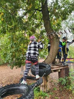 Der erste Ausflug ging zum Kletterpark in Rüsselsheim, dessen Angebot die Kinder begeisterte. Nach einer kurzen Einführung zur Benutzung und Handhabe, sollte jedes Kind in einem Übungsparcours das Erklärte umsetzen. Erst danach durfte losgeklettert werden.