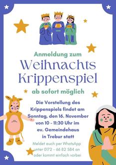 | 10:00 Uhr | Kigo im Gemeindehaus: Vorstellung des Krippenspiels |