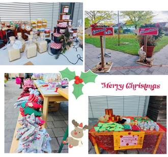 Die Kinder, Erzieher*innen und Eltern hatten fleißig für den Basar gebastelt und überraschten die Eltern, Angehörigen und die Nachbarschaft mit vielen liebevoll hergestellten Kleinigkeiten passend zur Weihnachtszeit. Des Weiteren sorgte der Elternbeirat für gute Stimmung mit süßen und herzhaften Leckereien sowie Glühwein und Co. Auch ein Weihnachtsengel schaute für die Kinder vorbei und übergab ihnen eine kleine Überraschung.