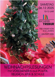 Am Sa 6. Dezember wird in der Bücherei Trebur vorgelesen, für große und kleine Menschen, für junge und ältere Menschen, für Menschen mit Bart und ohne Bart und für magische Tiere und ihre Gefährten.