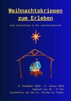 Besuchen Sie in der Zeit vom 9. Dezember 2024 bis 6. Januar 2025 unsere „Krippenausstellung zum Erleben“ in der Laurentiuskirche während der Öffnungszeiten unserer Kirche täglich von 10 bis 17 Uhr.
