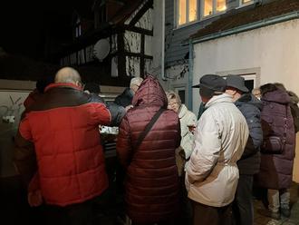 Kurzum, in Windeseile verlagerte sich die Glühwein-Gesellschaft in den warmen, trockenen Innenraum und es entwickelte sich eine prächtige, unterhaltsame Stimmung.