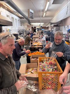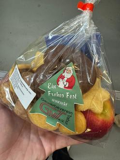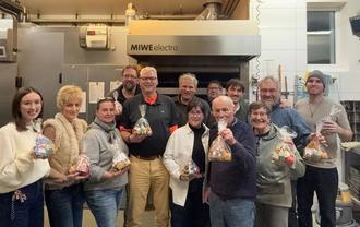 Mit vielen Helfern wurden die Nikolauspäckchen in der Bäckerei Abels verpackt und mit allerlei Leckereien bestückt. Der Dank geht an die Organisatoren des GVT sowie die Unterstützer, Bäckerei Abels, REWE Özmentekin, Getränkehandel Steinbrecher und Obstbau Lukas. Einen besonderen Dank an die Line Dance Gruppe des Astheimer Carneval Ausschuss 1949 e.V., die mit selbst gehäkelten Figuren das Nikolauspäckchen bereichert haben.