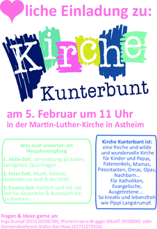 11 Uhr Kirche Kunterbunt mit Pfrin. Lena Brugger und Team, „Ein Neujahrempfang“