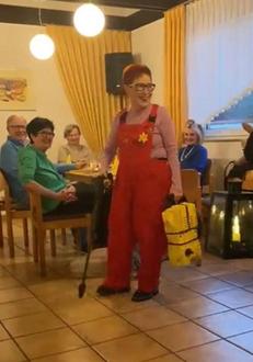 „Im Dämmerlicht zünd ich mir ´ne Kerzen an und sehe mir den Lichtschein mit Vergnügen an“, mit diesem Vers begrüßten Astrid Fischer und Lieselotte Dörr die erwartungsvollen Gäste, ehe auch gleich der erste Programmpunkt des Abends eingeläutet wurde. Zu den Klängen des Laternenlieds erschienen nun die beiden Vorstandsdamen L. Dörr und B. Heymann singend, mit einer Laterne ausgestattet, worauf viele Gäste auch spontan mitsangen und sie tatkräftig gesanglich unterstützten.