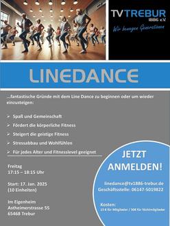 Wer gesellig ist, sich gerne zu populärer Musik bewegen möchte und gerade kein Gegenüber für ein Tänzchen zur Hand hat, ist auf das Herzlichste eingeladen die Gelegenheit zu nutzen und bei den Line Dancern des TV Trebur vorbeizuschauen. Der erste Übungsabend ist zum Schnuppern und kostenfrei!