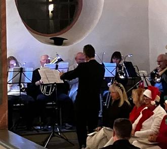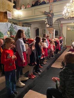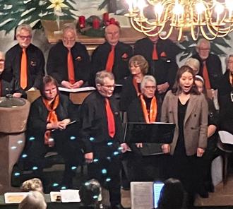 Die Disharmonix, was der moderne Chor des MGV Mozart Trebur ist, sang unter der Leitung ihres Dirigenten Bernd Hansen von der Empore der Kirche die Lieder: „Maria durch den Dornwald ging“, „Wounderful World“, „Santa Claus is comming“, sowie „Home for Chrismas“.