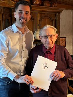 Jakob Best aus Geinsheim ist in diesem Jahr am 20. November 100 Jahre alt geworden. Da Bürgermeister Jochen Engel an diesem Tag erkrankt war, holte er seinen Besuch in diesen Tagen nach. Er besuchte Jakob Best zu Hause und überbrachte ihm nachträglich ganz herzliche Glückwünsche der Gemeinde Trebur.